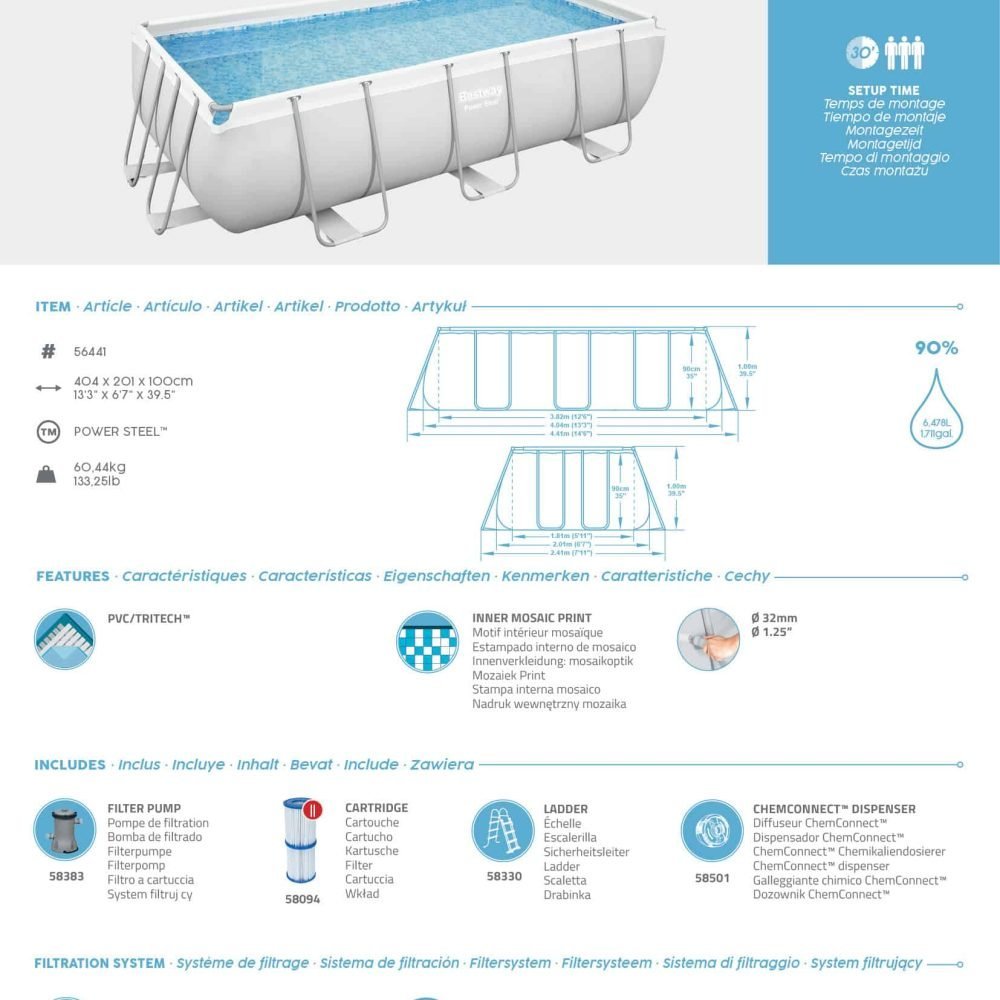 Bestway 56441 | Size 13.3 x 6.5 x 3.20 Ft | Power Steel Rectangular Metal Frame Portable Ready-Made Swimming Pool