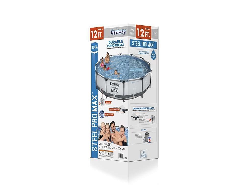 Introducing the Bestway 12 X 12 Steel Pro Max Swimming Pool 56416, a versatile and family-friendly option for cooling off and splashing around during the hot summer months. This Steel Pro Max pool boasts a generous size of 12 in Length and 2.50 in height, providing ample space for Construction, Roof Top, Farm House, Dogs, Fish Farming, Army Camp to enjoy. Crafted from durable materials, this pool is built to withstand regular use and offers long-lasting durability.