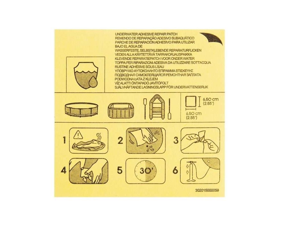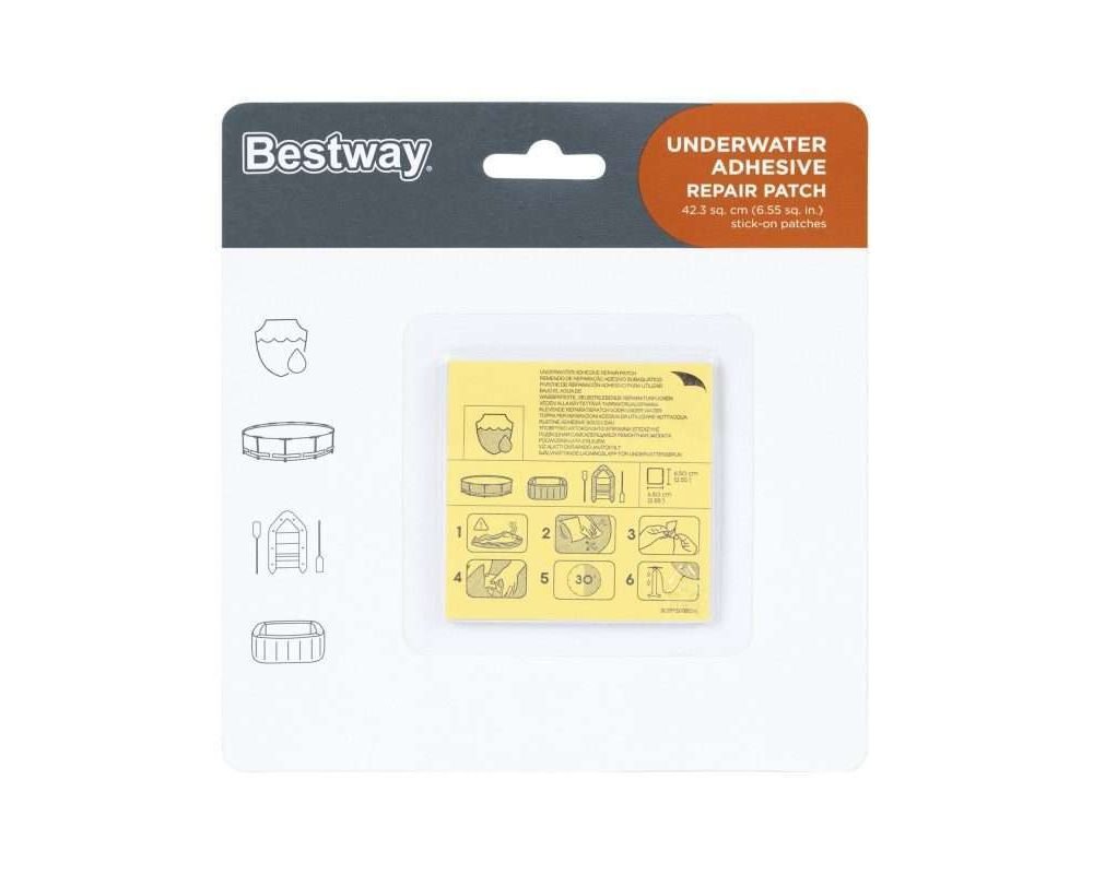 Bestway 62091. Product type: Patch, Product colour: Multicolour, Number of pieces: 10 pc(s). Weight: 32 g, Package width: 220 mm, Package depth: 230 mm. Package type: Blister. Minimum order quantity: 36 pc(s), Products per pallet: 5544 pc(s)
