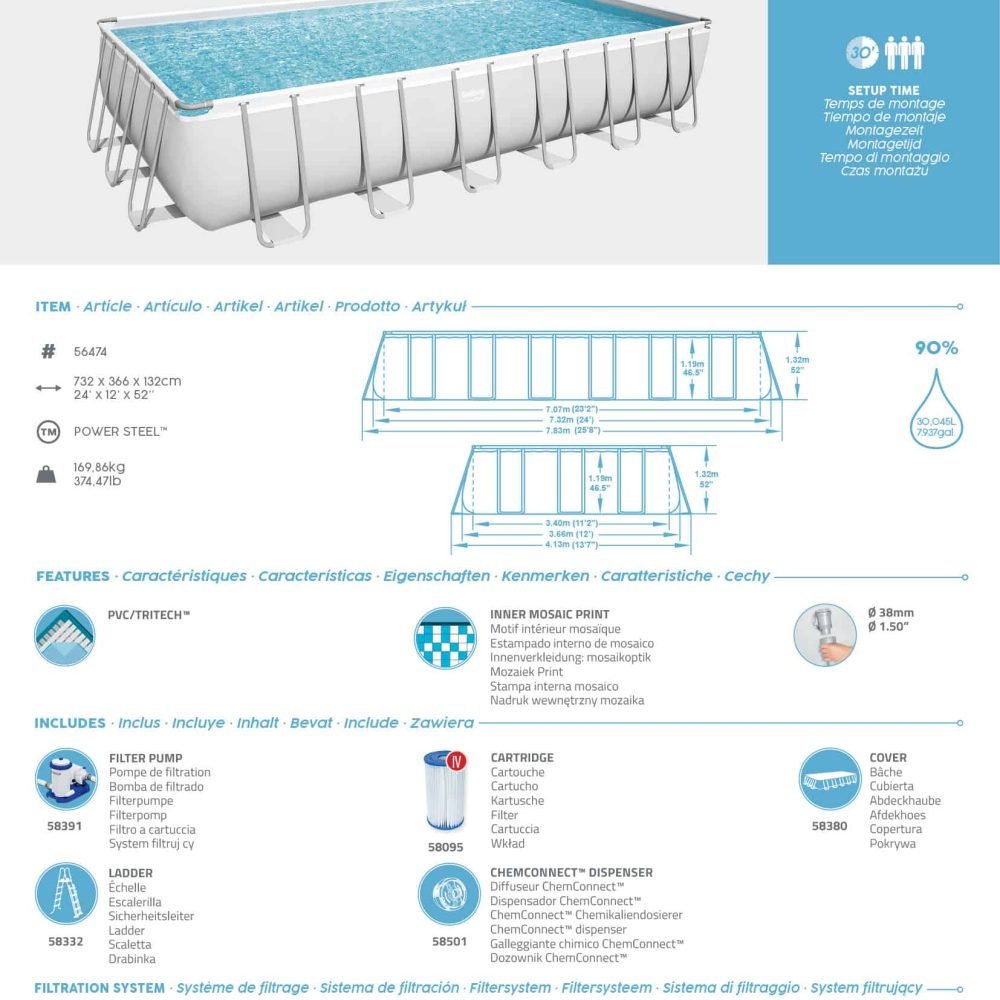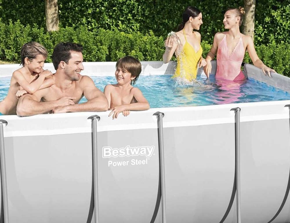 Bestway 56442 | Size 13.3 x 6.7 x 3.30 Ft | Power Steel Rectangular Metal Frame Portable Ready-Made Swimming Pool