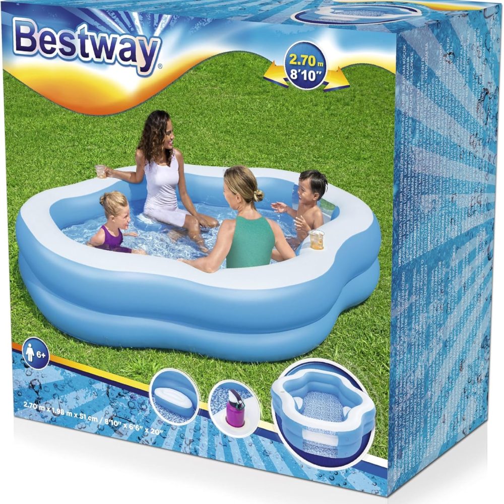Introducing the Bestway 8.10 X 6.6 Inflatable Swimming Pool 54409, a versatile and family-friendly option for cooling off and splashing around during the hot summer months. This Inflatable pool boasts a generous size of 8.10 in Length and 1.6 in height, providing ample space for Kids to enjoy. Crafted from durable materials, this pool is built to withstand regular use and offers long-lasting durability.