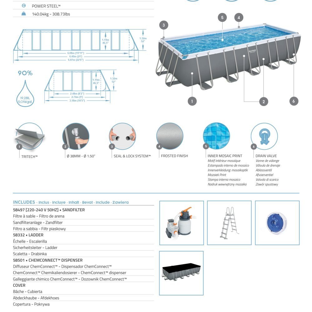 Introducing the Bestway 21 X 9 Power Steel Swimming Pool 5612B, a versatile and family-friendly option for cooling off and splashing around during the hot summer months. This Power Steel pool boasts a generous size of 21 in Length and 4.30 in height, providing ample space for Swimming, Adults, Family, College, Learn Swimming, Hydrotherapy, Physiotherapy, Roof Top, Farm House, Ganesh Visarjan, Chhath Puja, Baptism, Dogs, Fish Farming, Army Camp to enjoy. Crafted from durable materials, this pool is built to withstand regular use and offers long-lasting durability.