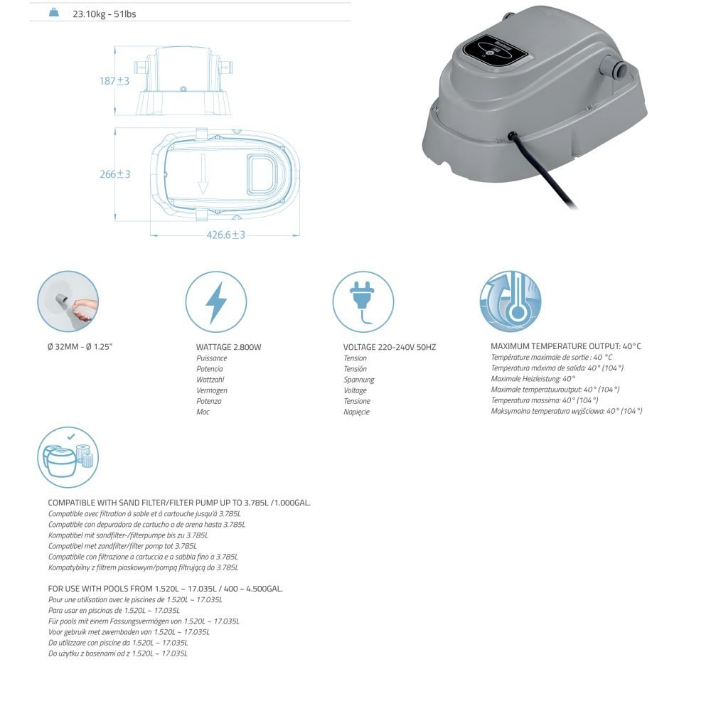 | Filter Compatibility | Sand Filter/Filter Pump Upto 3.785L-1.000GAL |