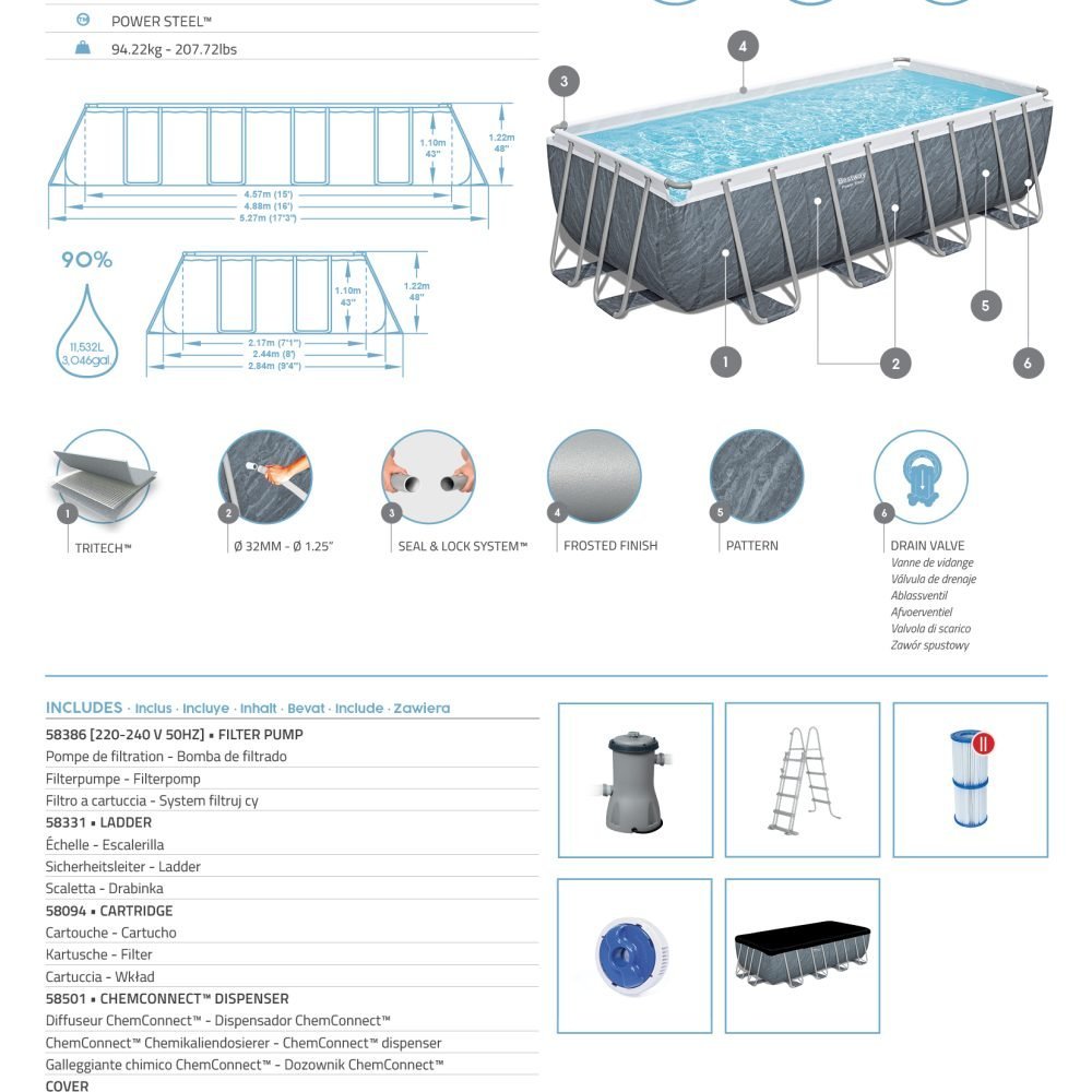 The Bestway model 56996 offers a perfect blend of simplicity and enjoyment, ideal for transforming any backyard into a refreshing oasis. With Bestway's hallmark of quality, this Power Steel pool promises easy setup and endless fun. Its design is both lightweight and spacious, inviting you to explore more of its technical features and consider making it the centerpiece of your summer leisure activities.