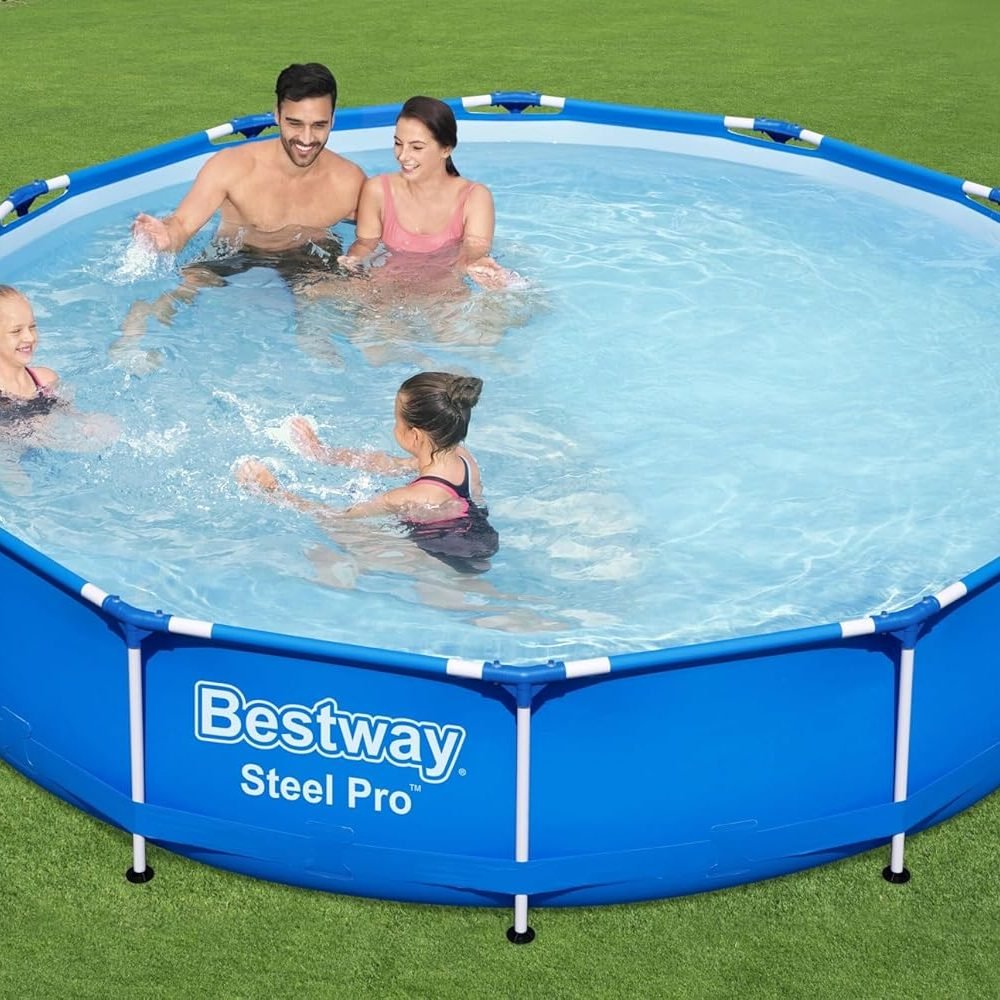 Introducing the Bestway 12 X 12 Metal Frame Swimming Pool 56681, a versatile and family-friendly option for cooling off and splashing around during the hot summer months. This Metal Frame pool boasts a generous size of 12 in Length and 2.50 in height, providing ample space for Kids to enjoy. Crafted from durable materials, this pool is built to withstand regular use and offers long-lasting durability.